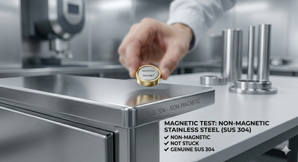 Inox 304 thuộc nhóm Austenitic nên không bị hít bởi nam châm. Nếu nam châm hút mạnh, đó chắc chắn là inox 430 hoặc thép thường.