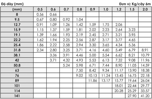 Các loại ống phổ biến
